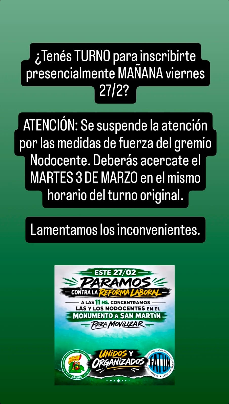 ATENCIÓN INGRESANTES - TURNOS VIERNES 27/02