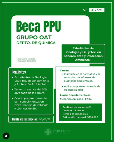 ✅ Convocatoria a BECA PPU 𝗡° 𝟬𝟭𝟳/𝟮𝟱 en el Grupo OAT.