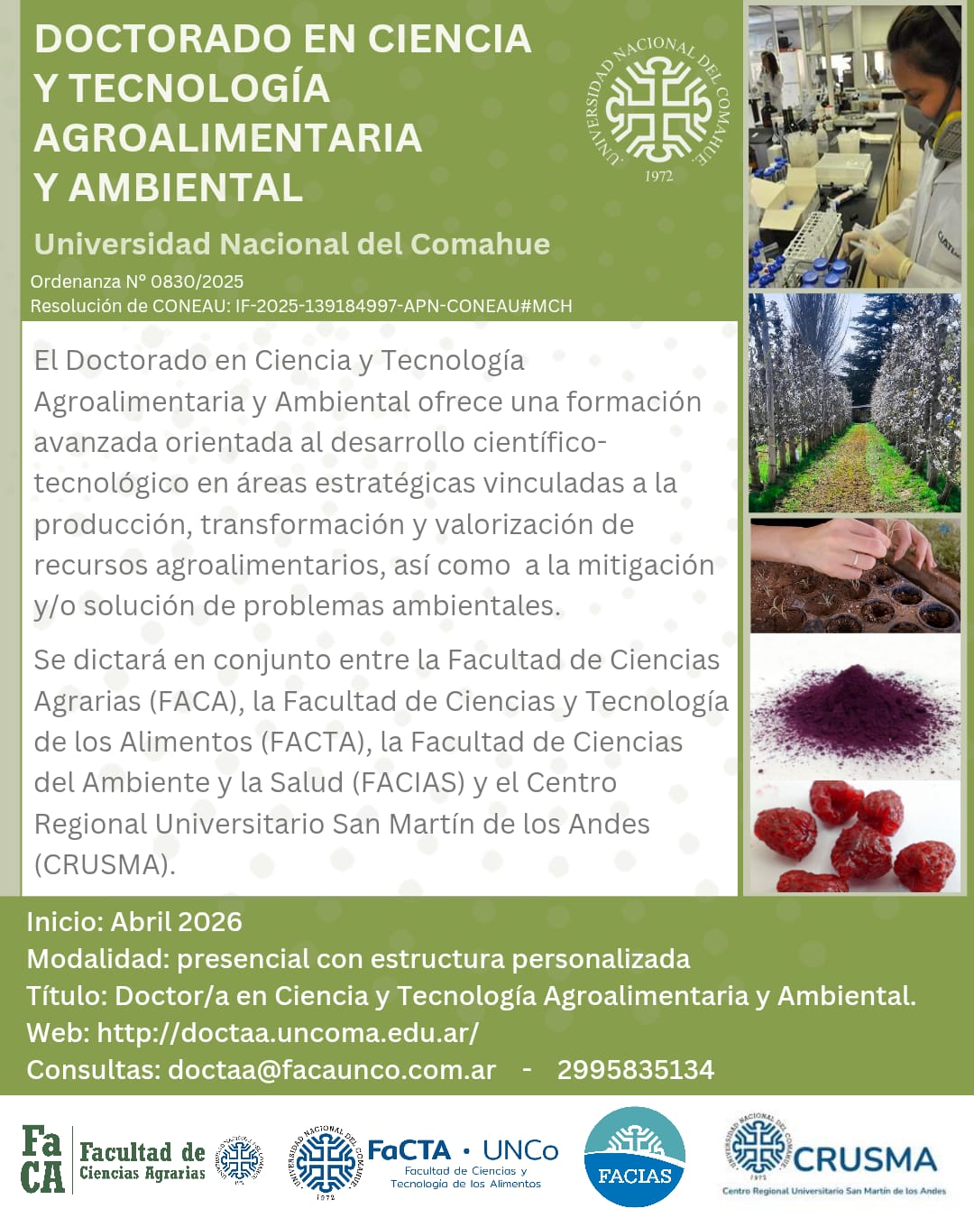 DOCTORADO EN CIENCIAS Y TECNOLOGÍA AGROALIMENTARIA Y AMBIENTAL